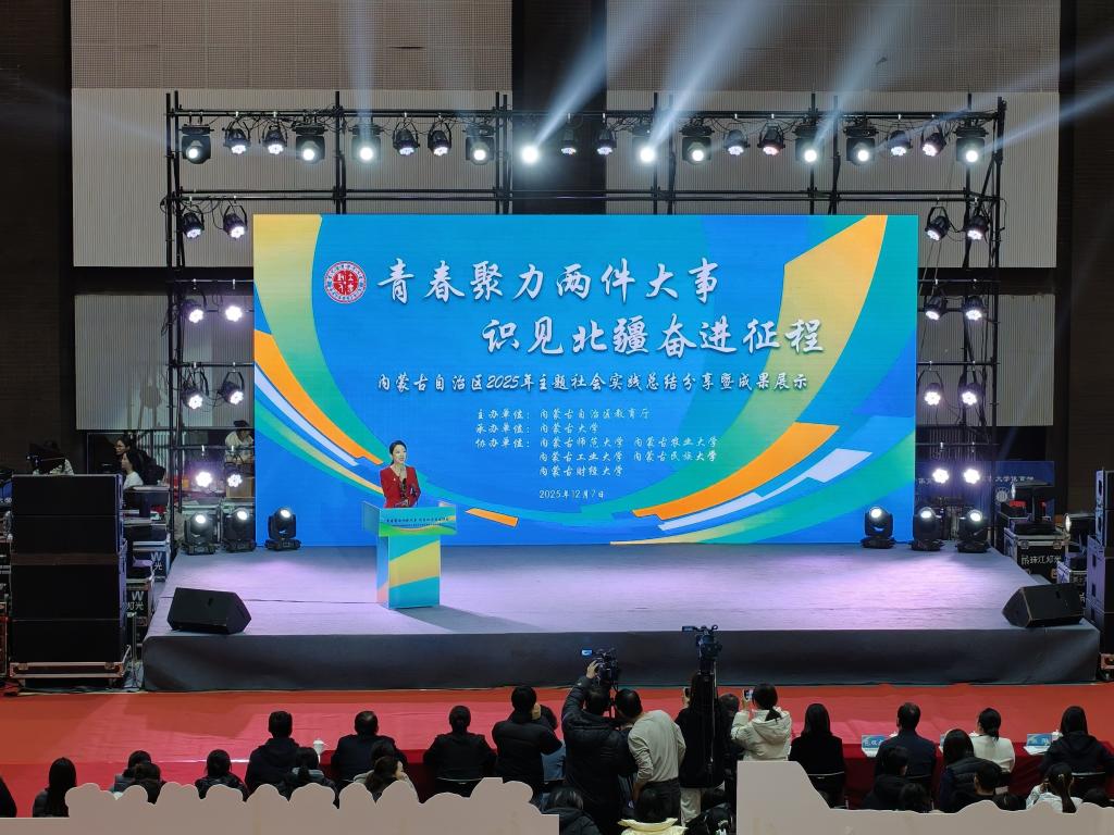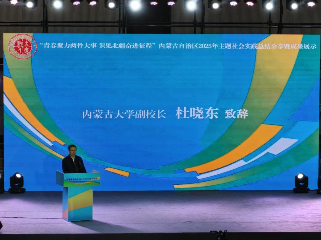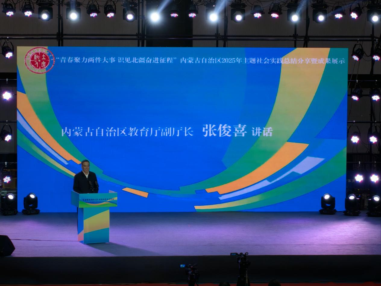 2025 年 12 月 7 日,由内蒙古自治区教育厅主办、内蒙古大学承办的 “青春聚力两件大事 识见北疆奋进征程” 主题社会实践总结分享暨成果展示活动在内蒙古大学隆重举行。自治区教育厅副厅长张俊喜、内蒙古大学副校长杜晓东、自治区教育厅思想政治工作处处长刘慧及各高校团委书记、师生代表齐聚一堂,共同回望暑期社会实践的火热历程,见证北疆青年的责任担当。